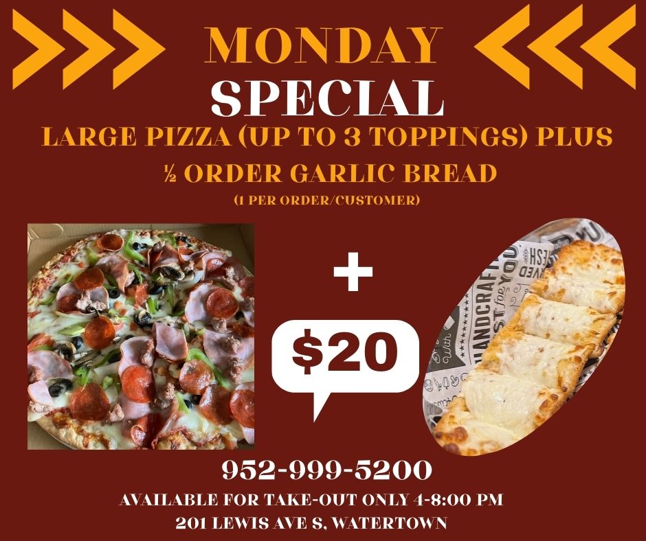 Take-Out Only: Sunday – Tuesday, 4:00 PM – 9:00 PM