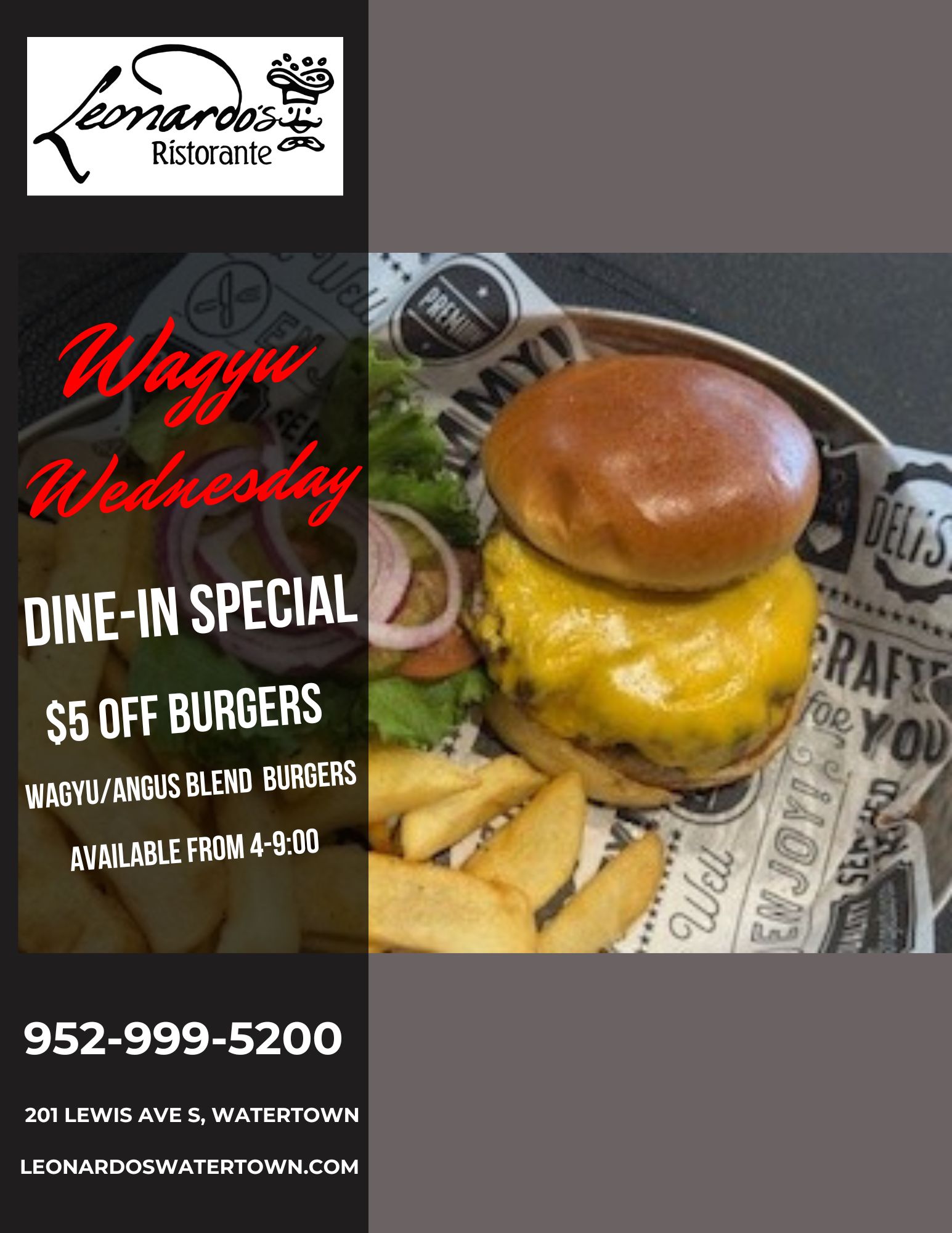 Dine-In & Take-Out: Wednesday – Saturday, 4:00 PM – 9:00 PM